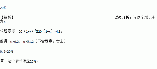 某公司今年销售一种产品,1月份获得利润20万元,由于产品畅销,利润逐月增加,3月份的利润比2月份的利润增加4.8万元,假设该产品利润每月的增长率相同,求这个增长率.
