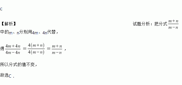 A. 也扩大4倍 B. 扩大为原来的4倍 C. 不变 D. 缩小为原来的![]()