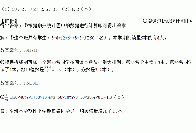 ③求全班本学期比上学期每名同学的平均阅读量增加了多少本?