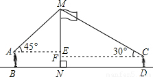 解:过点A作AE⊥MN于E,过点C作CF⊥MN于F,