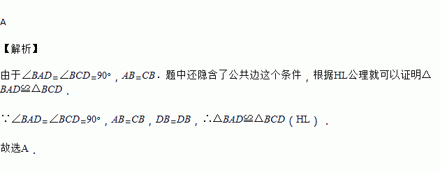 如图,∠BAD=∠BCD=90°,AB=CB,可以证明△BAD≌△BCD的理由是( )