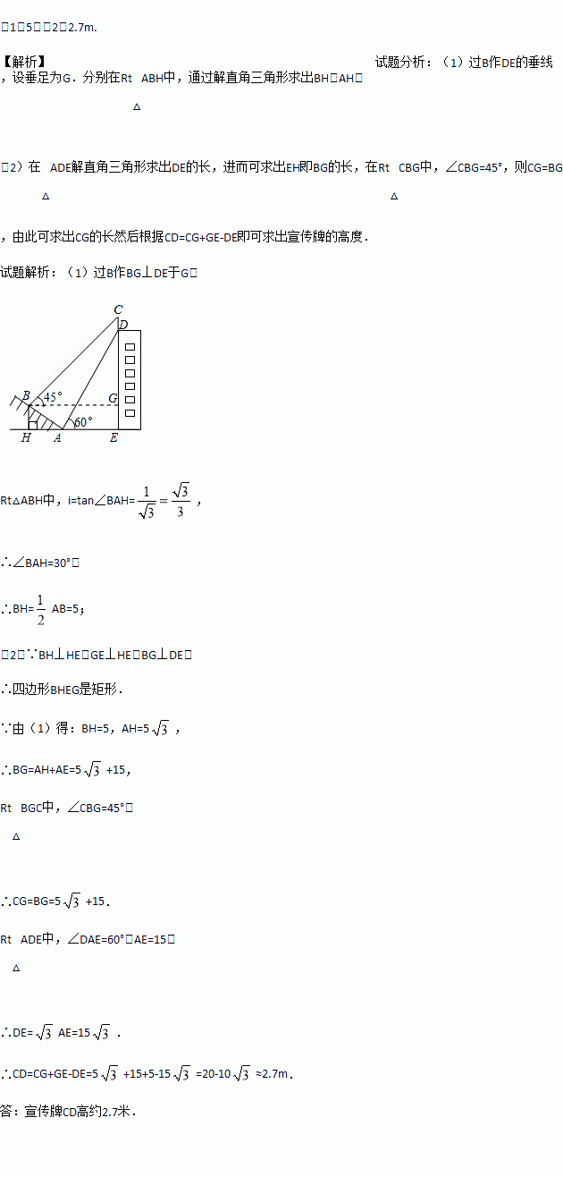 (2)求广告牌CD的高度.