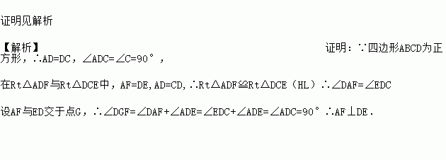 已知正方形ABCD,E、F分别为边BC、CD上的点,DE=AF.求证:AF⊥DE.