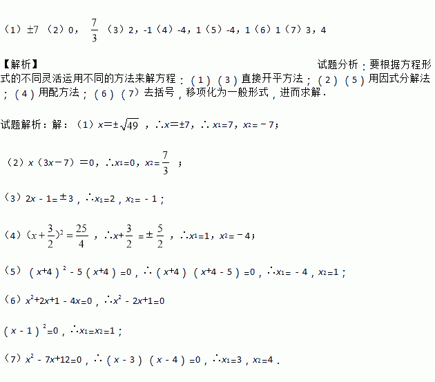 (3)(直接开平方法)