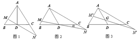 (3)如图3,当G是AD上任意一点时(点G不与A重合),过点G的直线交边AB于点 ,交射线AC于点,设AG=nAD, ,猜想: 是否成立?并说明理由.