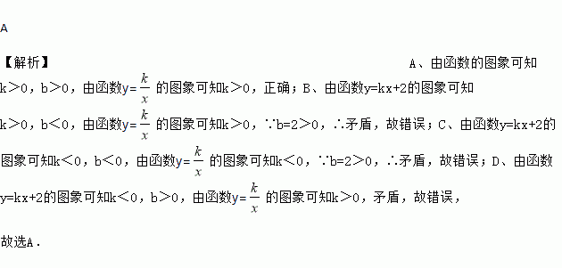 如图,函数y=与y=kx+2在同一坐标系中,图象只能是下图的( )