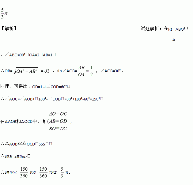如图,⊙O的半径为2,点A、C在⊙O上,线段BD经过圆心O,∠ABD=∠CDB=90°,AB=1,CD=,则图中阴影部分的面积为______.