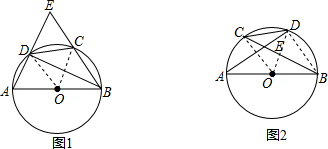 (2)如图2,如果点C、D在⊙O上运动,CD的长度不变,若点E在⊙O内,求∠AEB的度数.