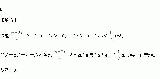 关于x的一元一次不等式≤﹣2的解集为x≥4,则m的值为( )