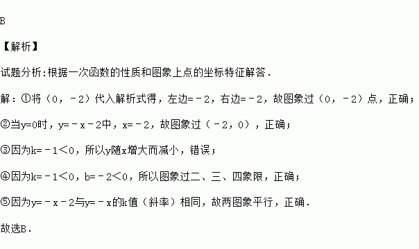 关于函数y=﹣x﹣2的图象,有如下说法:
