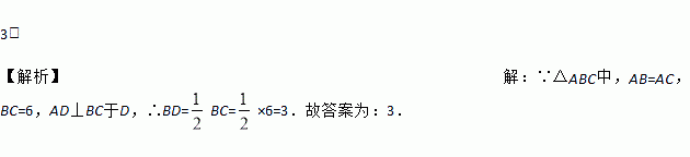 如图,在△ABC中,AB=AC,BC=6,AD⊥BC于D点,则BD=_________.