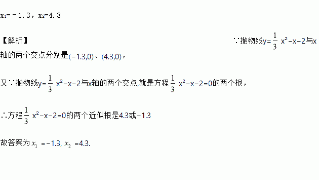 二次函数y=x2﹣x﹣2的图象如图所示,那么关于x的方程x2﹣x﹣2=0的近似解为_____(精确到0.1).