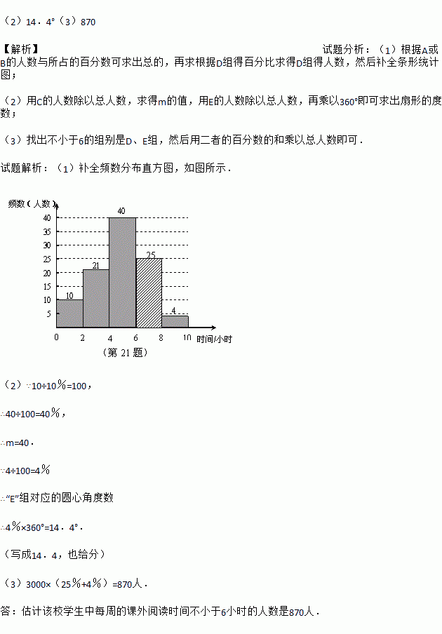 (3)请估计该校3000名学生中每周的课外阅读时间不小于6小时的人数.
