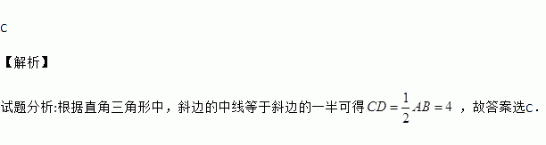 在Rt△ABC中,CD是斜边AB边的中线,若AB=8,则CD的长是( )