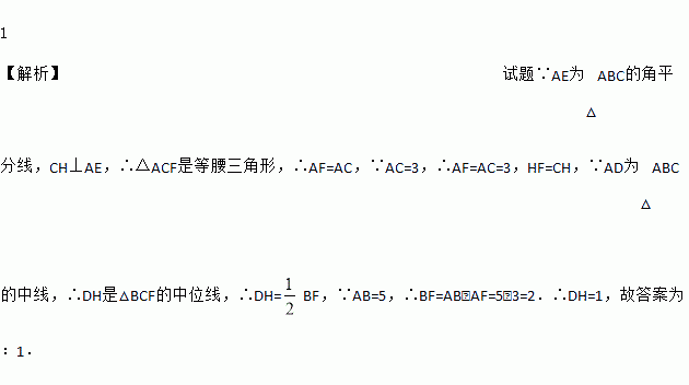 如图,在△ABC中,AB=5,AC=3,AD、AE分别为△ABC的中线和角平分线,过点C作CH⊥AE于点H,并延长交AB于点F,连结DH,则线段DH的长为_____.