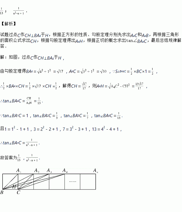 如图,把n个边长为1的正方形拼接成一排,求得tan∠BA1C=1,tan∠BA2C=