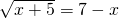 方程的两边同时平方得:x+5=(7-x)2