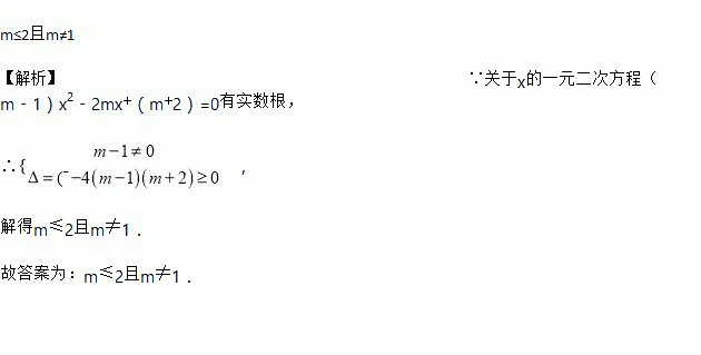 若关于x的一元二次方程(m﹣1)x2﹣2mx+(m+2)=0有实数根,则m取值范围是_____.