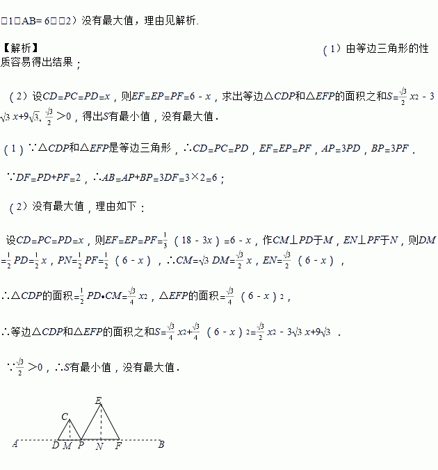(2)若AB=18时,等边△CDP和△EFP的面积之和是否有最大值,如果有最大值,求最大值及此时P点位置,若没有最大值,说明理由.
