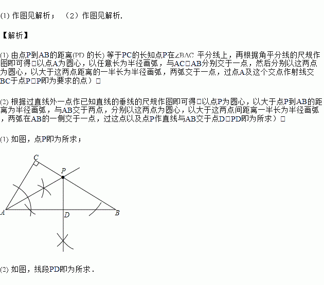 利用尺规作图,在BC边上求作一点P,使得点P到AB的距离![]()