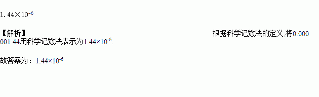 某软件园成功研制一项高新技术,在一块生物芯片上集成若干个探针,每个探针的单位面积约为0.000 001 44 ,用科学计数法表示0.000 001 44=_____.