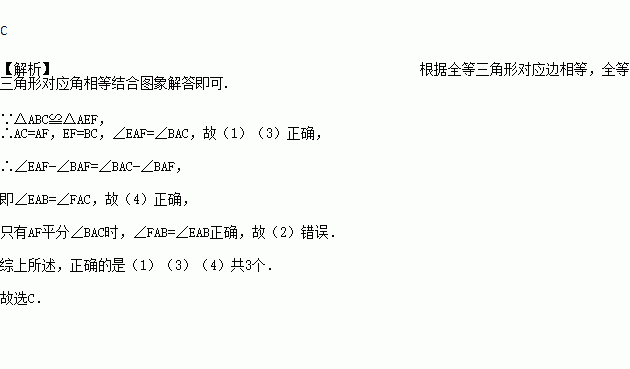 ②∠FAB=∠EAB,③EF=BC,④∠EAB=∠FAC,其中正确结论的个数是( )