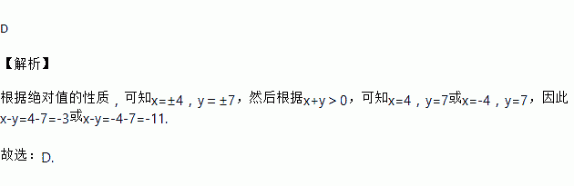 A. 3或11 B. 3或﹣11 C. ﹣3或11 D. ﹣3或﹣11