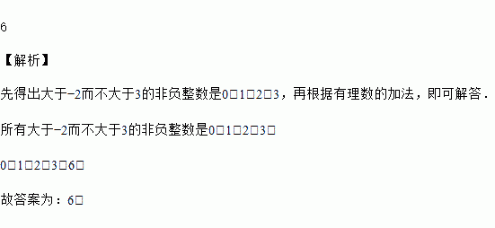 所有大于﹣2而不大于3的非负整数的和是________.