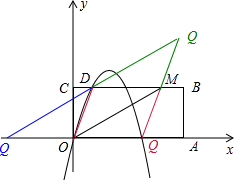 此时DM与OQ平行且相等,那么点Q在x轴正半轴上,且DM=OQ,可据此先得到点Q的坐标,再代入抛物线中进行验证即可.