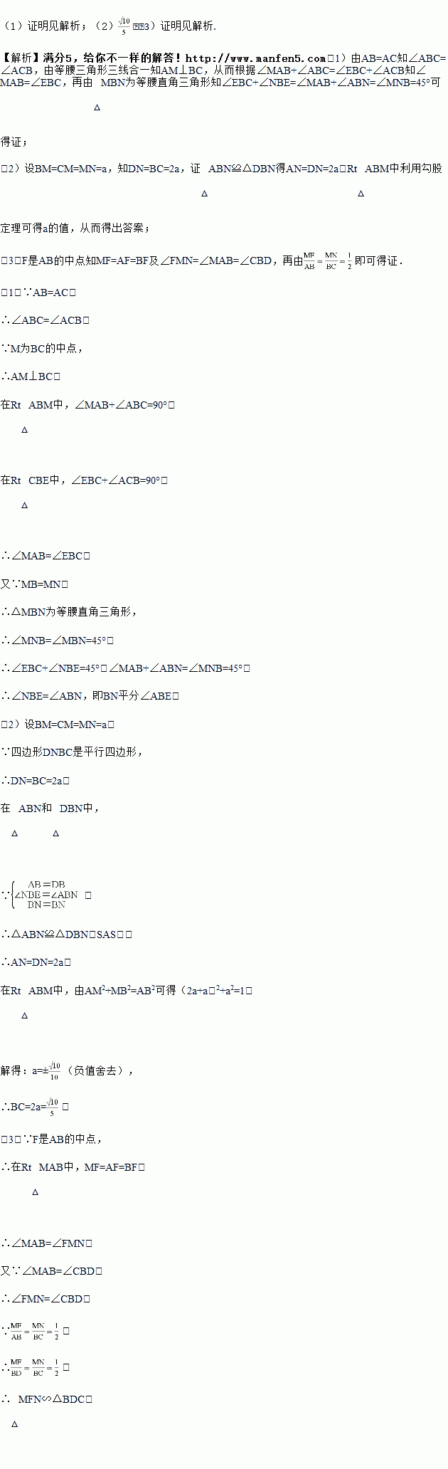 (3)如图②,若点F为AB的中点,连结FN、FM,求证:△MFN∽△BDC.