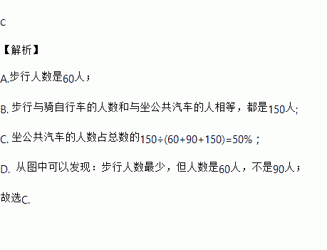 B. 步行与骑自行车的人数和比坐公共汽车的人要少