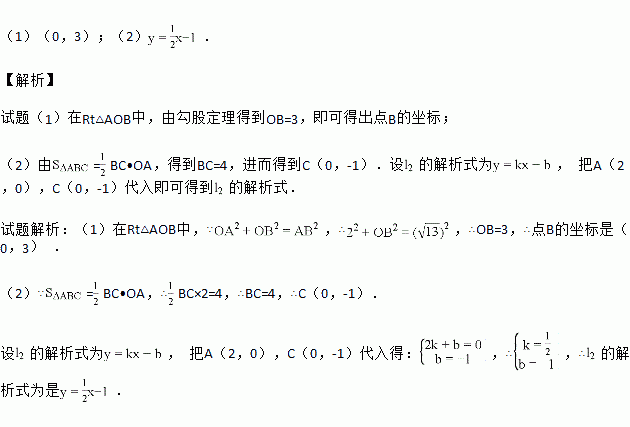如图,过点A(2,0)的两条直线,分别交轴于B,C,其中点B在原点上方,点C在原点下方,已知AB=.