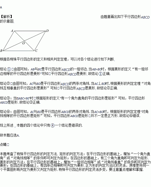 ①当AB=BC时,它是菱形;②当AC⊥BD时,它是菱形;③当∠ABC=90°时,它是矩形;④当AC=BD时,它是正方形.