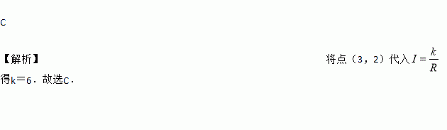 某闭合电路中,电源的电压为定值,电流I(A)与电阻R(Ω)成反比例.图表示的是该电路中电流I与电阻R之间函数关系的图象,则用电阻R表示电流I的函数解析式为( )