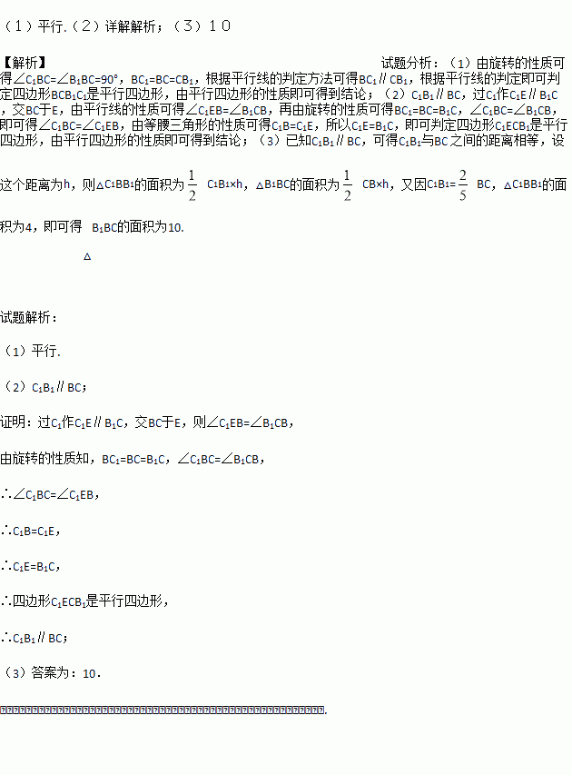 (3)如图3,在图2的基础上,连接B1B,若C1B1=