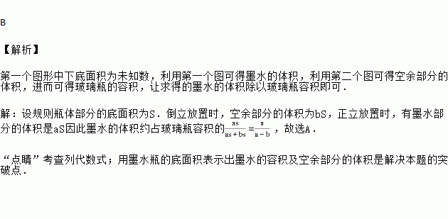如图,一个瓶身为圆柱体的玻璃瓶内装有高a厘米的墨水,将瓶盖盖好后倒置,墨水水面高为h厘米,则瓶内的墨水的体积约占玻璃瓶容积的( )