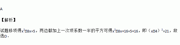 A. (x﹣4)2=21 B. (x﹣4)2=11 C. (x+4)2=21 D. (x+4)2=11