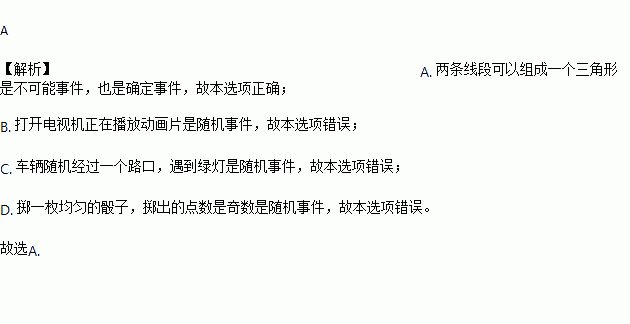 A. 两条线段可以组成一个三角形 B. 打开电视机正在播放动画片
