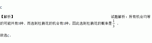 某市决定从桂花、菊花、杜鹃花中随机选取一种作为市花,选到杜鹃花的概率是( )