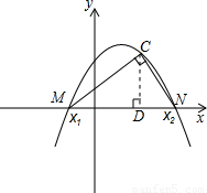 解:如图,设点M、N坐标分别为(xl,0)、(x2,0).