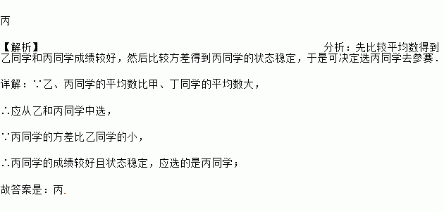 如果要选出一个成绩好且状态稳定的同学参赛,那么应该选择的同学是_____.