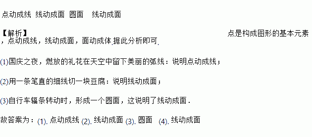 (1)国庆之夜,燃放的礼花在天空中留下美丽的弧线:____________;