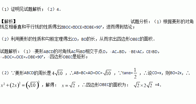 (2)若菱形ABCD的周长是, ,求四边形OBEC的面积。