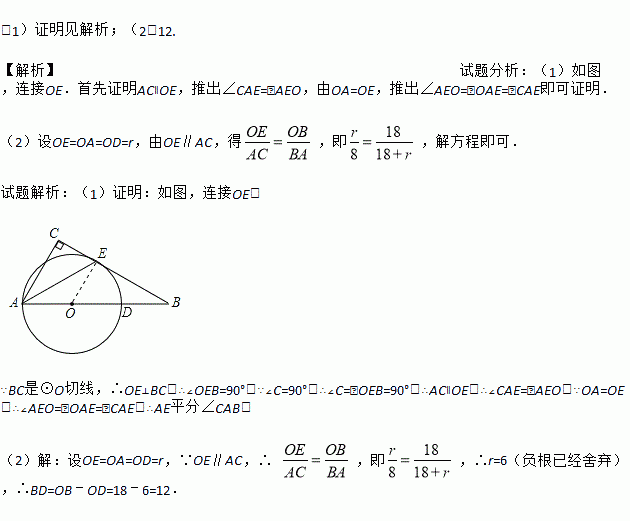 (1)求证:AE平分∠BAC;