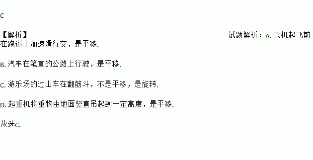 C. 游乐场的过山车在翻筋斗 D. 起重机将重物由地面竖直吊起到一定高度