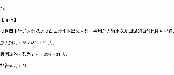 近年来,出境旅游成为越来越多中国公民的假期选择,将2017年某小区居民出境游的不同方式的人次情况画成扇形图和条形图,如图所示,那么2017年该小区居民出境游中跟团游的人数为___.
