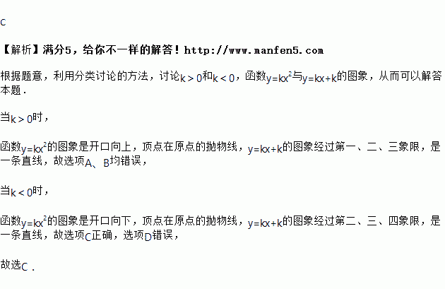 将函数y=kx2与y=kx+k的图象画在同一个直角坐标系中,可能的是( )