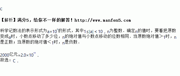 潍坊市2018年政府工作报告中显示,潍坊社会经济平稳运行,地区生产总值增长8%左右,社会消费品零售总额增长12%左右,一般公共预算收入539.1亿元,7家企业入选国家“两化”融合贯标试点,潍柴集团收入突破2000亿元,荣获中国商标金奖.其中,数字2000亿元用科学记数法表示为( )元.(精确到百亿位)