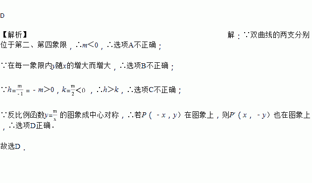 C. 若A(﹣1,h),B(2,k)在图象上,则h<k D. 若P(﹣x,y)在图象上,则P′(x,﹣y)也在图象上