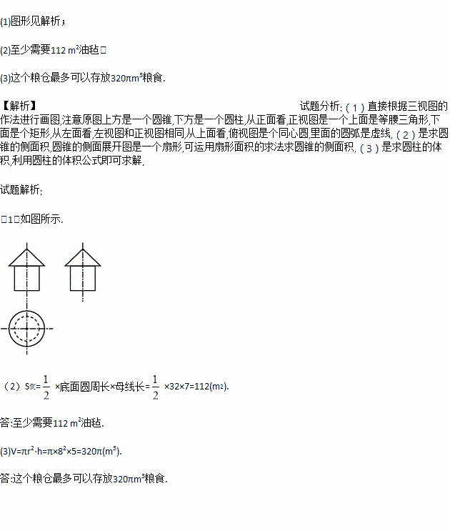(1)画出粮仓的三视图;